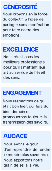 Les membres célèbrent un héritage culinaire riche et diversifié tout en cultivant l’innovation et la créativité. Chaque adhérent est le garant de la qualité et un ambassadeur de la gastronomie française, portant haut les couleurs de la convivialité et de l’excellence à travers le monde. Ensemble, ils racontent l’histoire captivante de la gastronomie, du respect des traditions à l’art de la cuisine, tout en ouvrant de nouveaux horizons culinaires et en transmettant leur savoir-faire.